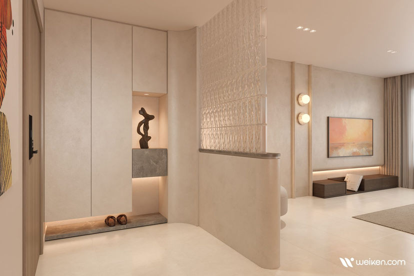 characterised by it's simplicity in form and function, this project relies on uniformity in colours and strong focal points around the house to bring out the elegance and warmth of the space, all while reducing visual clutter in the home.